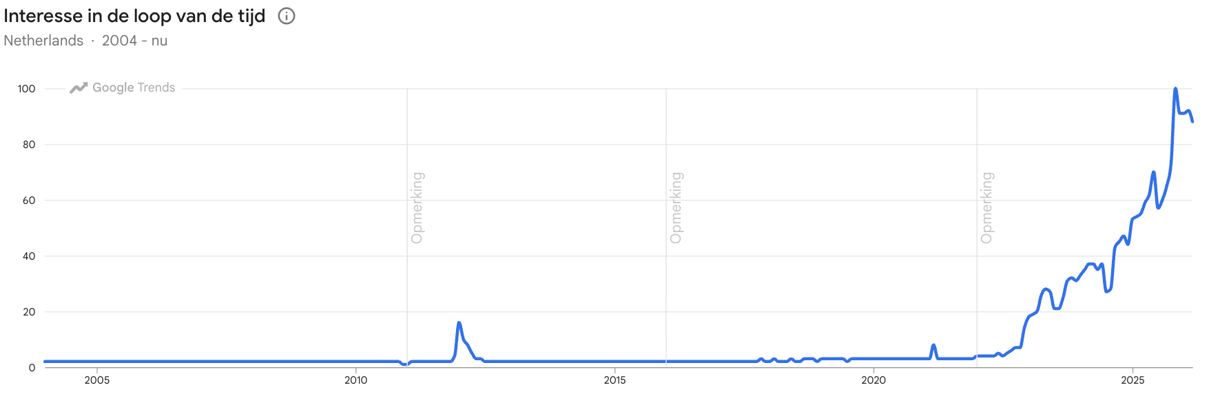 En dan november 2022. De populariteit schiet door het plafond. En blijft voor het eerst aanhouden.